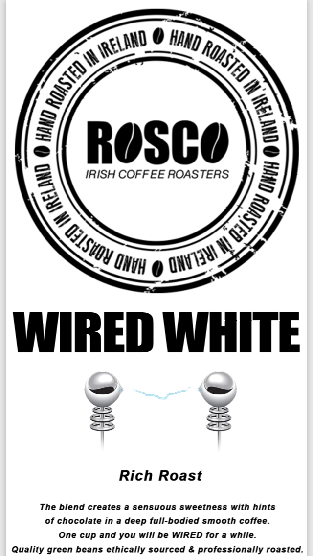 "Ross has been supplying us with his WIRED WHITE Blend coffee beans for the past four years. He provides a swift, friendly & professional service. Orders are always received promptly & he is always on hand to help us out. The coffee tastes great & is good value too. Overall, a great experience with ROSCO Coffee" Mark Billane : Grand Central Cafe Bar and Gin Palace, Dublin.