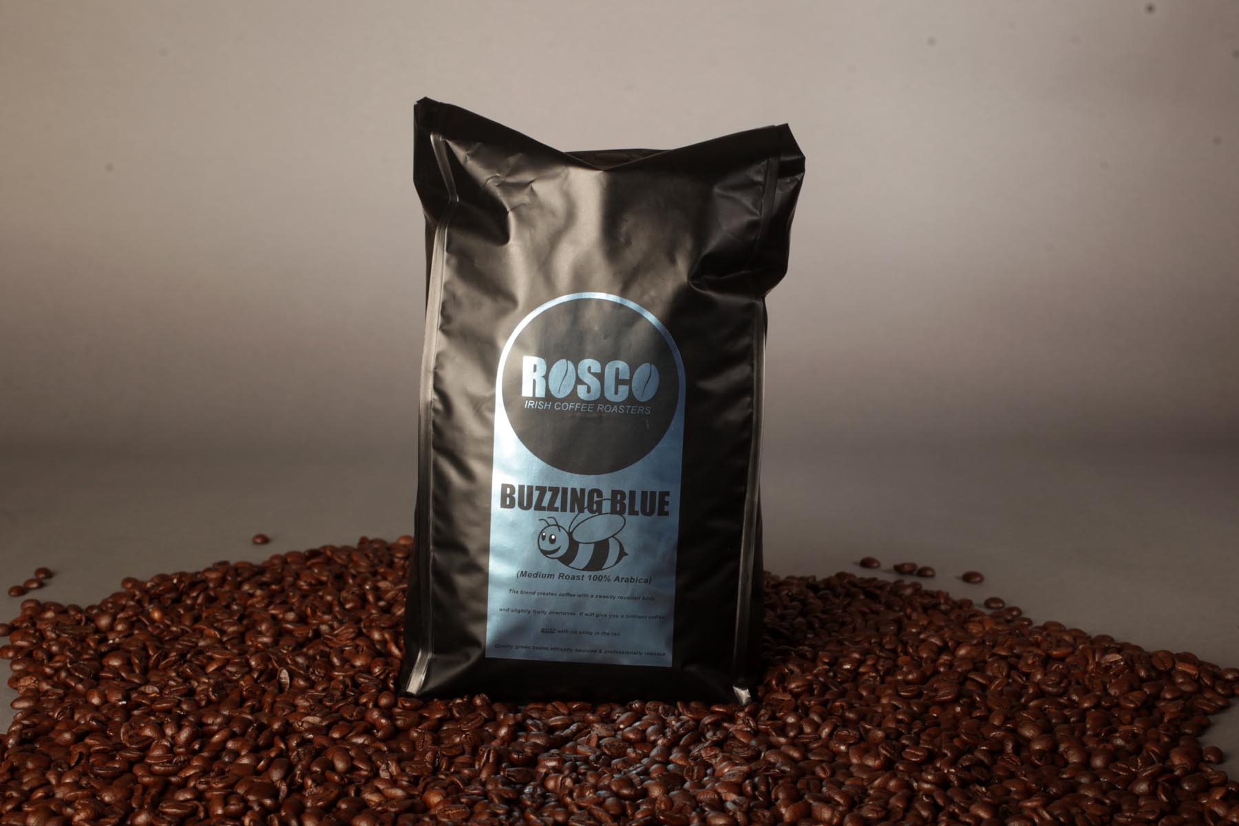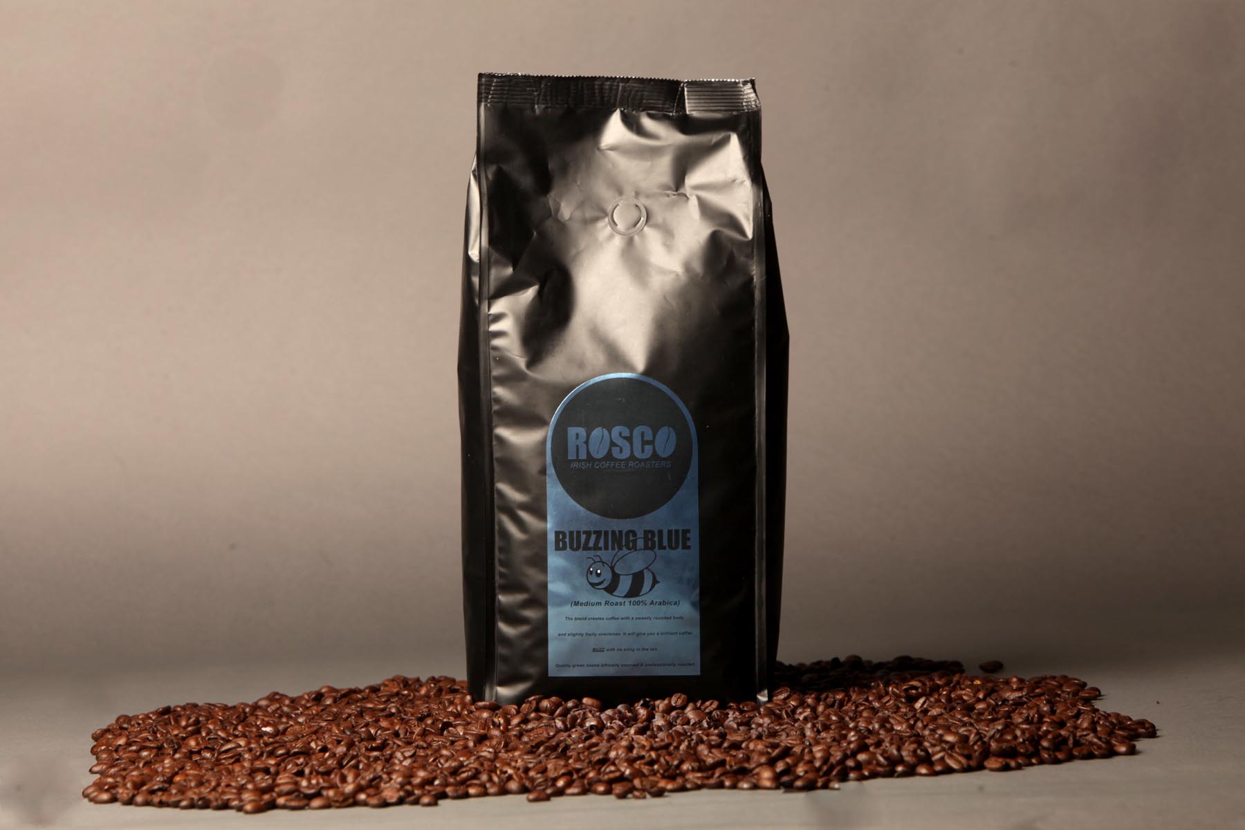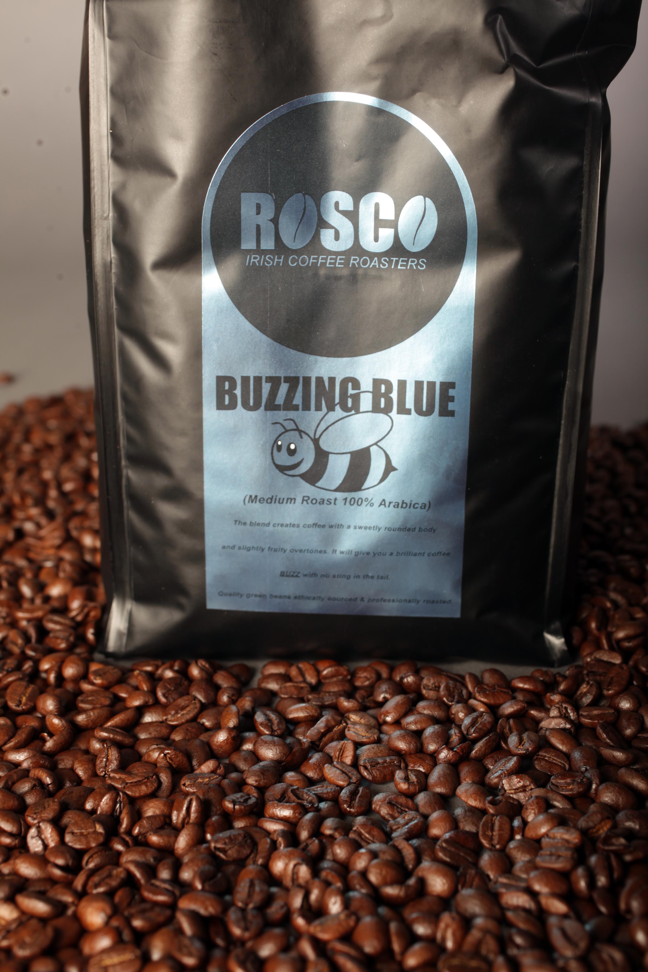 Buzzing Blue: Medium Roast blend using 100% Arabica Beans creating a Coffee with a sweetly rounded body and slightly fruity overtones. It will give you a brilliant Coffee Buzz with no sting in the tail.