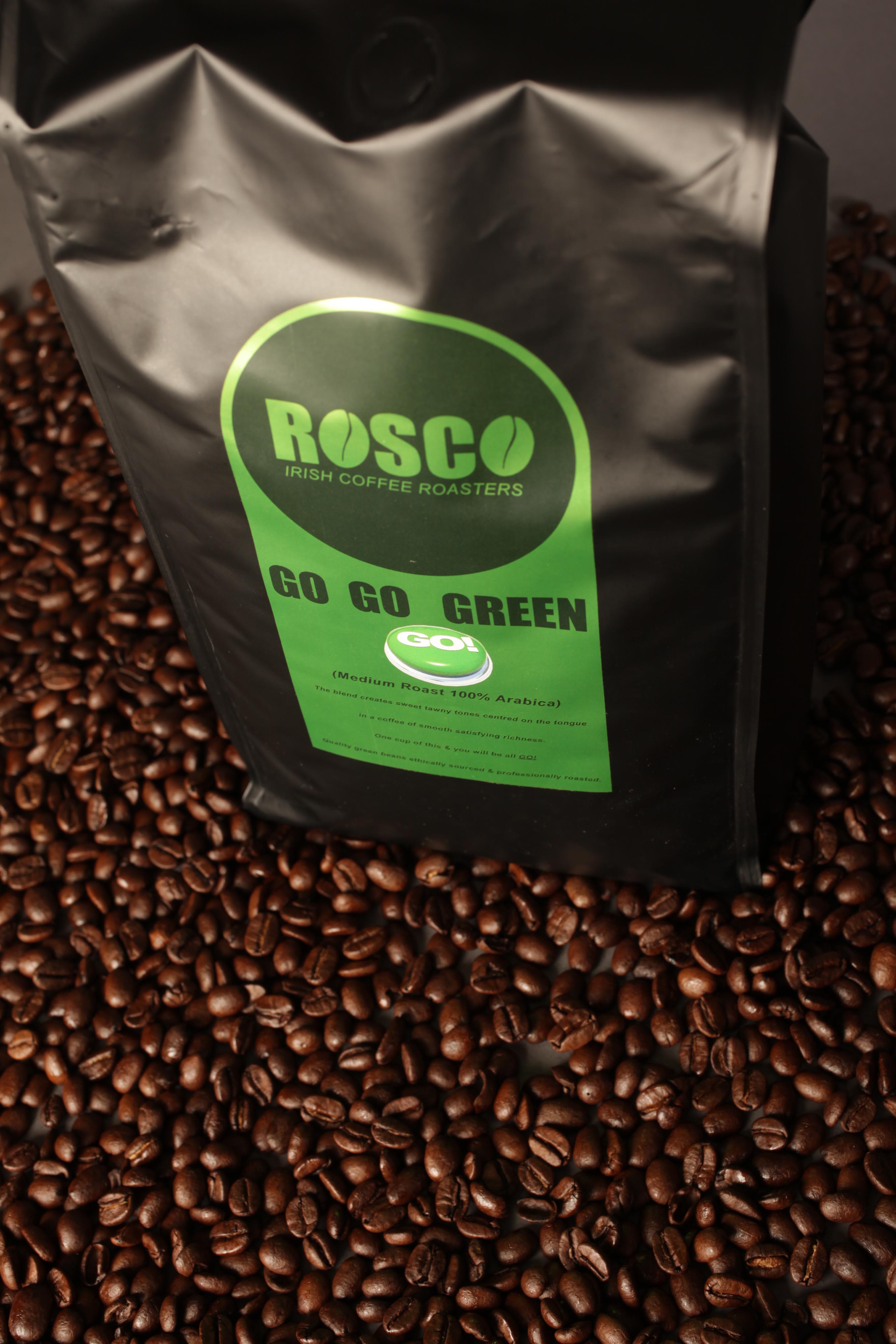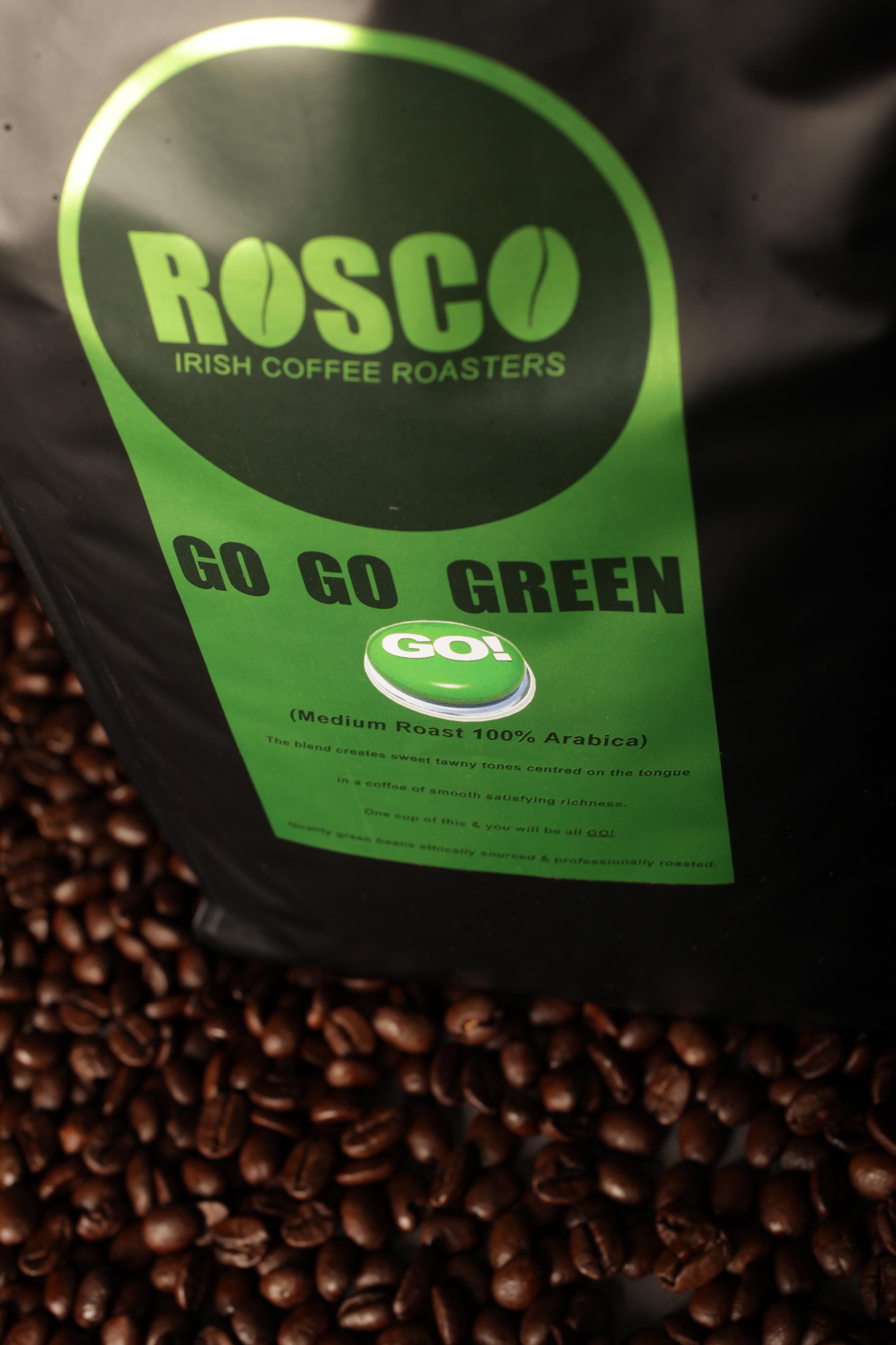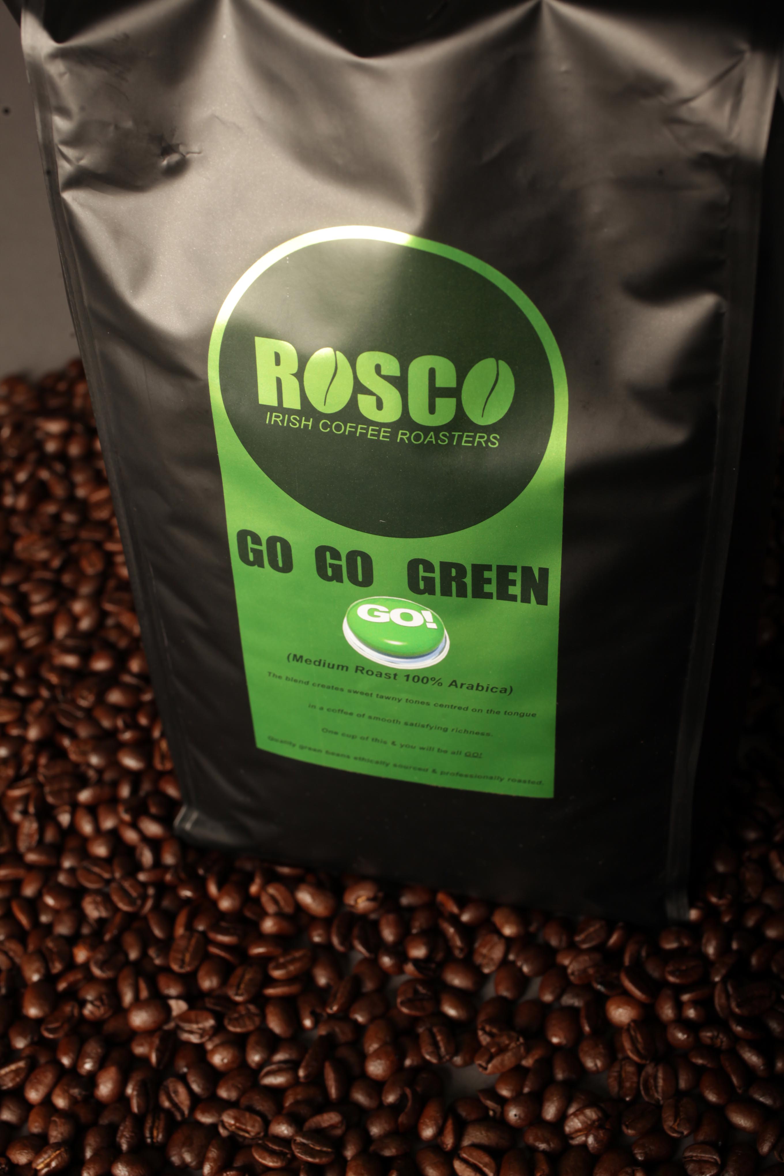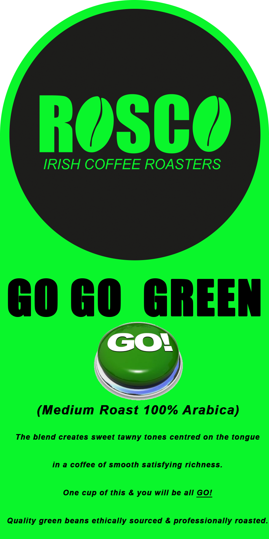 Go Go Green: Medium Roast blend using 100% Arabica Beans creating sweet tawny tones centred on the tongue in a Coffee of smooth satisfying richness. One cup of this and you will be all GO!.